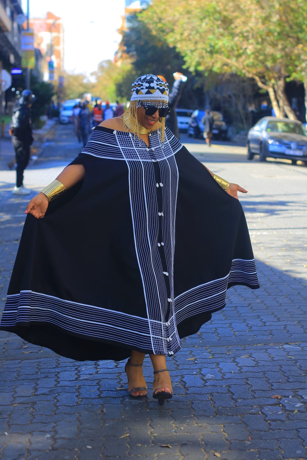 Vibrant African prints and intricate beadwork.
